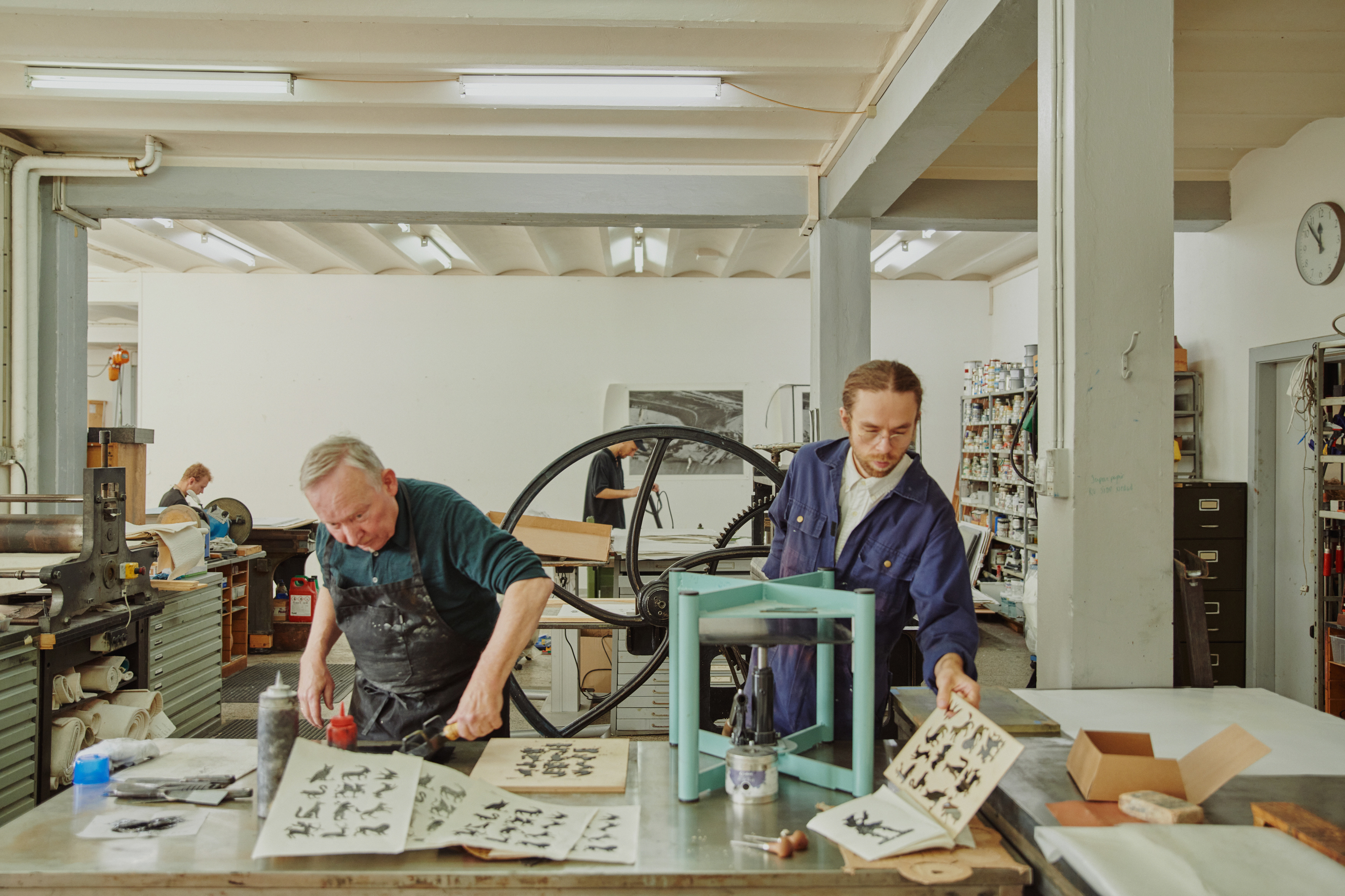All artists have tried new techniques and materials, from aquantint, drypoint, etching and woodcut, to chine collé, which turned this residency into a true learning space and exchange of energy. The master printers passed on knowledge that they’ve acquired over decades, and the artist brought new perspectives and energy to the table. This meeting across experiences was therefore a very special gap in the otherwise busy calendars of the BORCH team, who normally work with artists such as Tacita Dean, Julie Mehretu, Per Kirkeby, Tal R.
